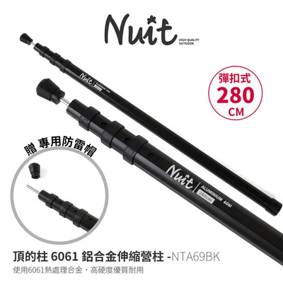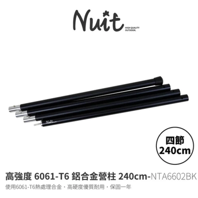 NUIT 努特 | NTA6602BK 高強度6061-T6鋁合金營柱240cm | 黑 套接營柱