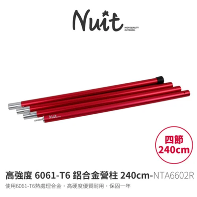 NUIT 努特 | NTA6602R 高強度6061-T6鋁合金營柱240cm | 紅 套接營柱