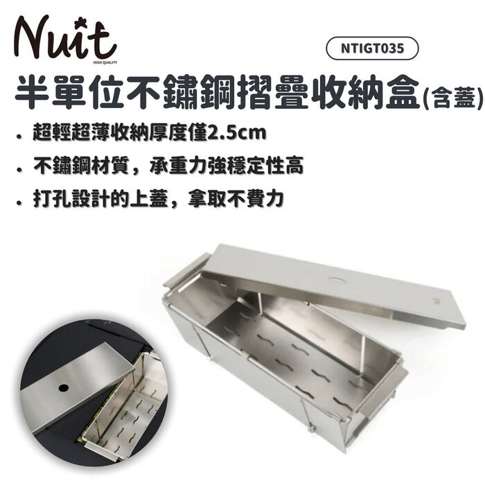 .商品名稱:努特NUIT 半單位不鏽鋼摺疊收納盒(附蓋)